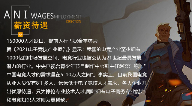 通過本專業(yè)的系統(tǒng)學習,畢業(yè)后可擔任的職位有電子競技數(shù)據(jù)分析、戰(zhàn)隊戰(zhàn)術(shù)策略信息分析與設計、電子競技比賽方案的規(guī)劃、電子競技賽事解說、電子商務專員、新媒體運營師、電子商務師、商業(yè)主播、短視頻運營、網(wǎng)站運營、數(shù)據(jù)分析師等。